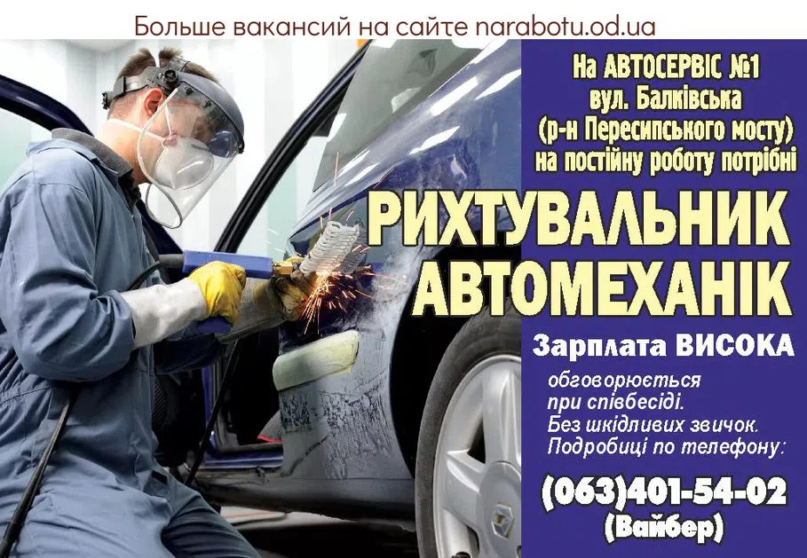 На АВТОСЕРВІС №1, вул. Балківська (Р-н Пересипського мосту) на постійну роботу потрібна. Зарплата ВИСОКА, обговорюється під час співбесіди. Без шкідливих звичок. Подробиці по телефону: Повідомте, …