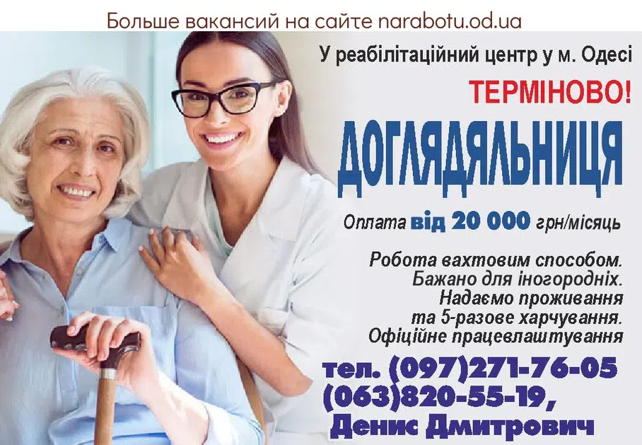 У реабілітаційний центр у м. Одесі ТЕРМІНОВО потрібна на постійну роботу. Оплата від 20 000 грн. на місяць. Робота вахтовим способом. Бажано для іногородніх. Надаємо …