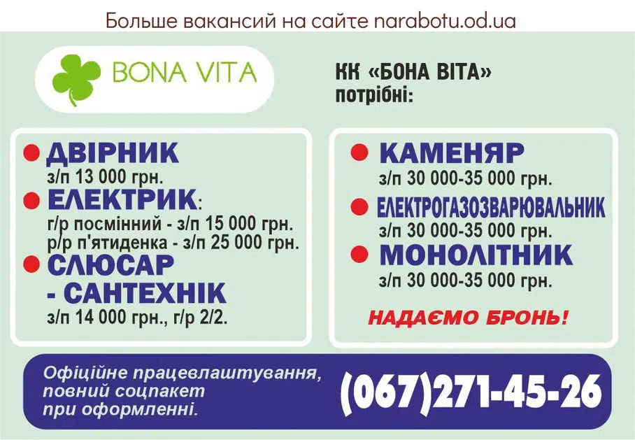 з/п 30 000-35 000 грн. потрібен КК «БОНА ВІТА». НАДАЄМО БРОНЬ! Офіційний працевлаштування, повний соцпакет при оформленні. Повідомте, будь ласка, роботодавцю, що Ви прочитали вакансію …