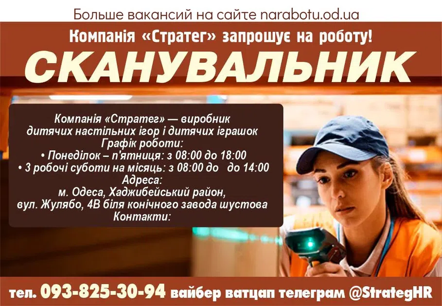 Компанія «Стратег» запрошує на роботу! Компанія «Стратег» – виробник дитячих настільних ігор та дитячих іграшок Зарплата 20 000 грн Графік роботи: • Понеділок – п'ятниця: …