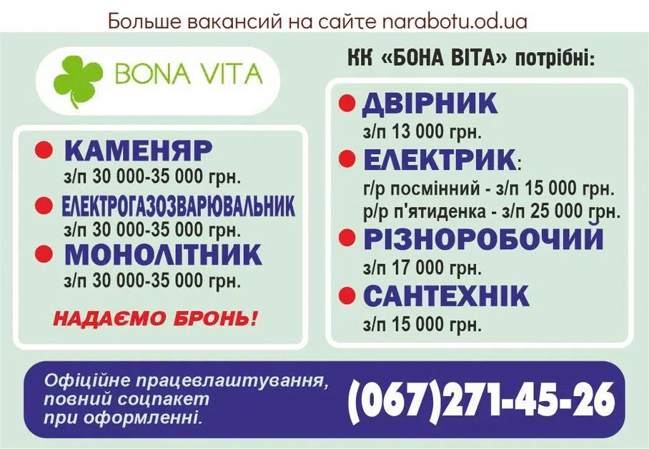 Запрошуємо на роботу у «ФІРМУ «НАШ ДІМ» Робота в ЖК «4 Сезони» Заробітна плата: 12 600. * Офіційне працевлаштування, оплачувану відпустку та соціальні гарантії. З …