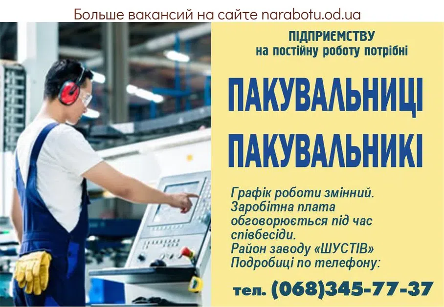 ПІДПРИЄМСТВУ на постійну роботу потрібні. Графік роботи змінний. Заробітна плата обговорюється під час співбесіди. Район заводу «ШУСТІВ» Подробиці по телефону: Повідомте, будь ласка, роботодавцю, що …