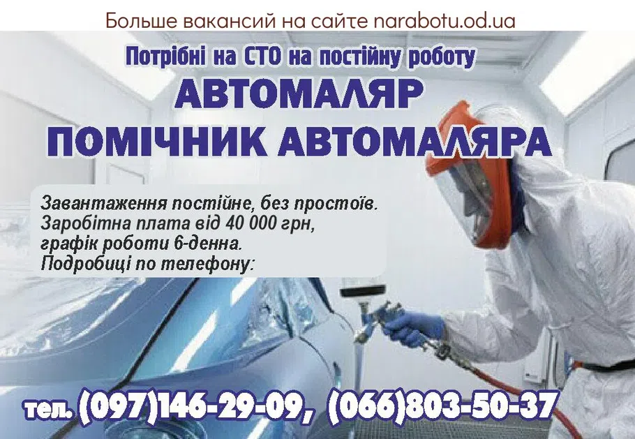 На постоянную работу требуется, автомастер по автомобильным салонам. Заработная плата ВЫСОКАЯ Подробности по телефону: Сообщите, пожалуйста, работодателю, что Вы прочитали вакансию на сайте narabotu.od.ua