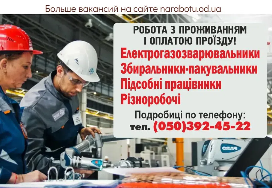 РАБОТА С ПРОЖИВАНИЕМ И ОПЛАТОЙ ПРОЕЗДА! Подробности по телефону: Сообщите, пожалуйста, работодателю, что Вы прочитали вакансию на сайте narabotu.od.ua