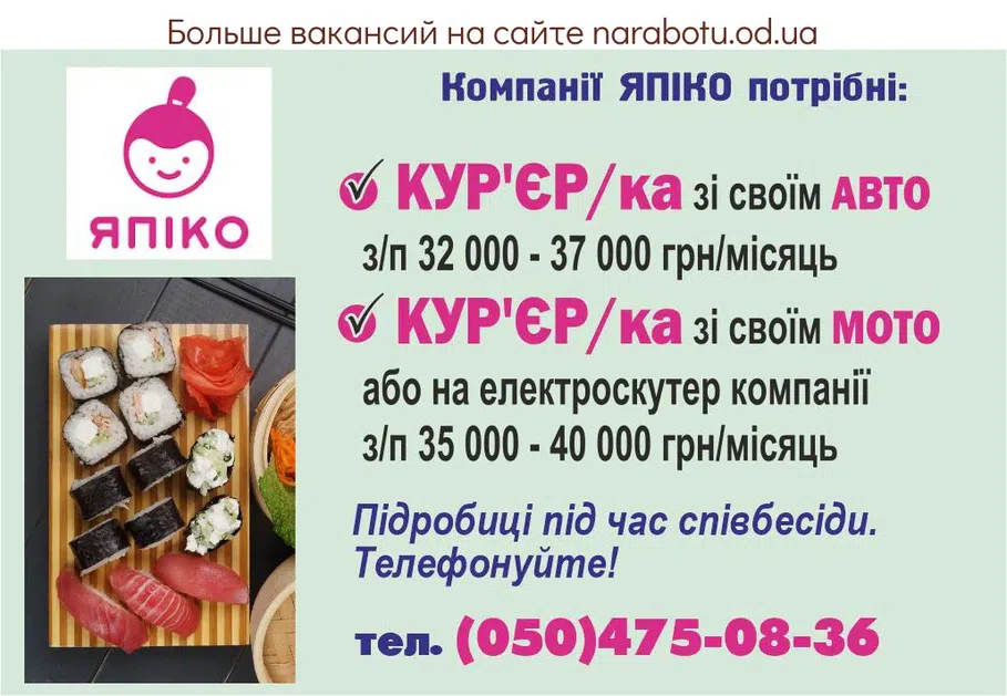 На Росподільчий склад потрібні на постійну роботу. Своєчасна виплата ЗП. Надаємо житло. Телефонуйте: Повідомте, будь ласка, роботодавцю, що Ви прочитали вакансію на сайті narabotu.od.ua