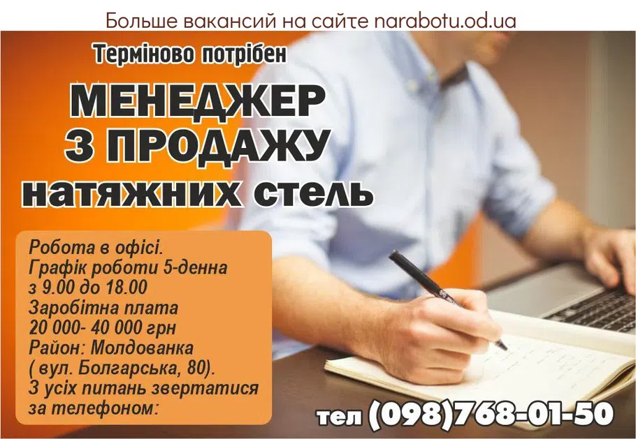 Терміново потрібен. Робота в офісі. Графік роботи 5-денна з 9.00 до 18.00 Заробітна плата 20 000- 40 000 грн Район: Молдованка ( вул. Болгарська, 80). …