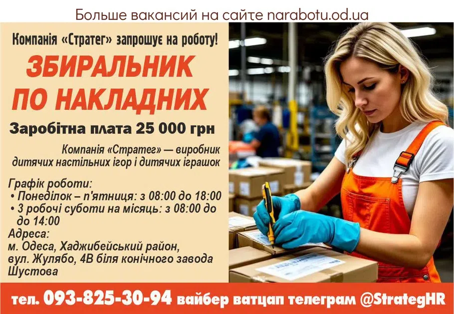 Компанія «Стратег» запрошує на роботу! Компанія «Стратег» — виробник дитячих настільних ігор і дитячих іграшок Заробітна плата 25 000 грн Графік роботи: • Понеділок – …